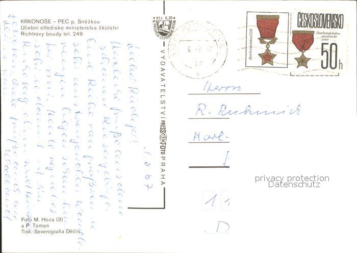 old postcard Krkonose Richtrovy Boudy Restaurant postalisch gelaufen Erhaltung siehe scans