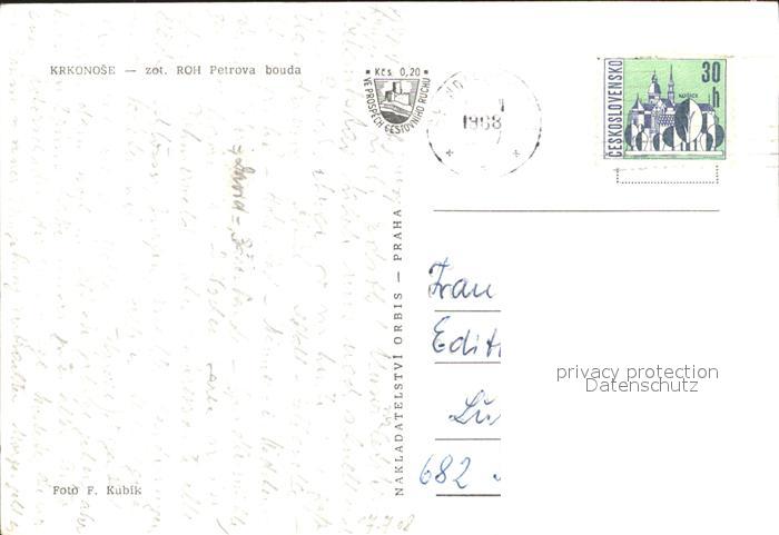 old postcard Krkonose Roh Petrova bouda postalisch gelaufen Erhaltung siehe scans