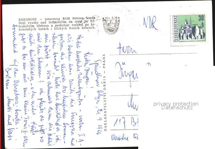 old postcard Krkonose ROH Petrova Bouda postalisch gelaufen Erhaltung siehe scans