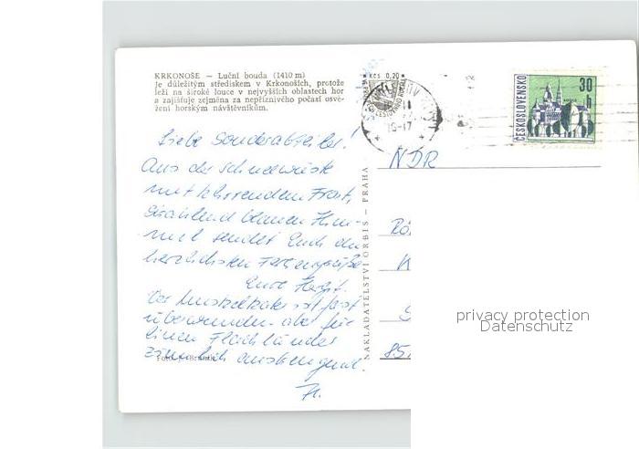 old postcard Krkonose Skigebiet postalisch gelaufen Erhaltung siehe scans