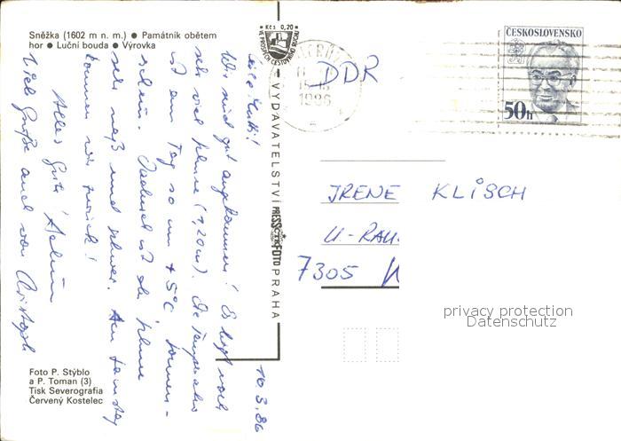 old postcard Krkonose Skigebiet postalisch gelaufen Erhaltung siehe scans [LiesaD40]