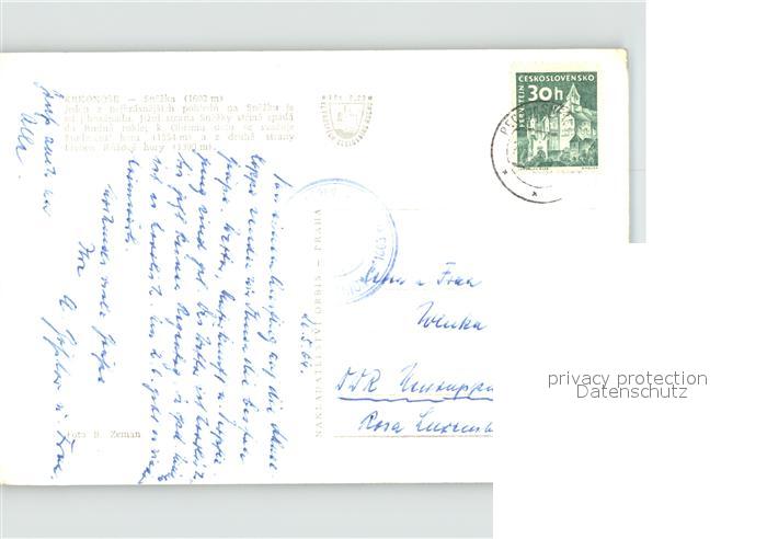 old postcard Krkonose Snezka Ruzovy Gory postalisch gelaufen Erhaltung siehe scans