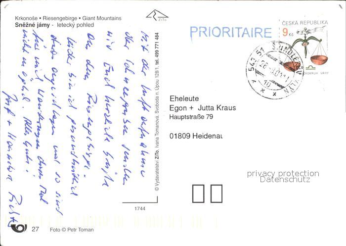 old postcard Krkonose Snezne Jamy Fliegeraufnahme postalisch gelaufen Erhaltung siehe scans [LiesaD40]