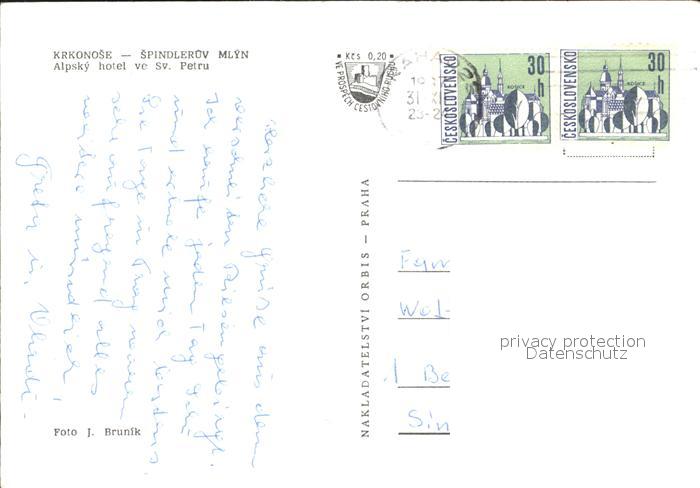 12251289 old postcard Krkonose Spindlerov Mlyn postalisch gelaufen Erhaltung siehe scans KatCode: 11410