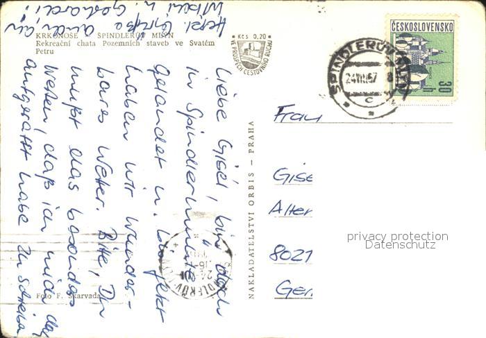 12467701 old postcard Krkonose Spindleruev Mlyn postalisch gelaufen Erhaltung siehe scans KatCode: 11410
