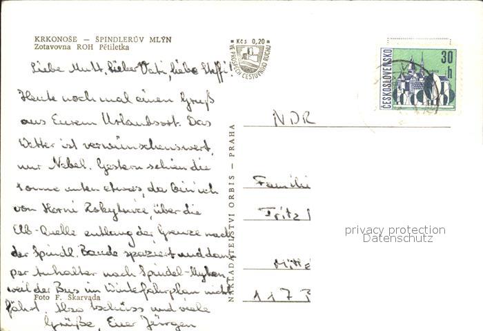 old postcard Krkonose Spindleruev Mlyn Stadtansicht postalisch gelaufen Erhaltung siehe scans [KathaD79]