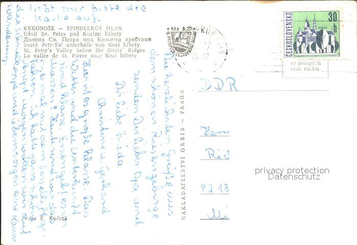 old postcard Krkonose Spindleruv Mlyn postalisch gelaufen Erhaltung siehe scans