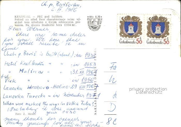 12514207 old postcard Krkonose Teilansicht postalisch gelaufen Erhaltung siehe scans KatCode: 11410