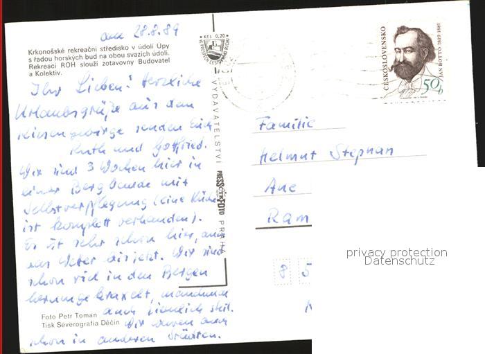 old postcard Krkonose Velka Upa postalisch gelaufen Erhaltung siehe scans