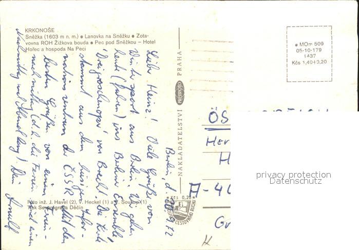 Krkonose Winter Skiurlaub Skilift postalisch nicht gelaufen Erhaltung siehe scans