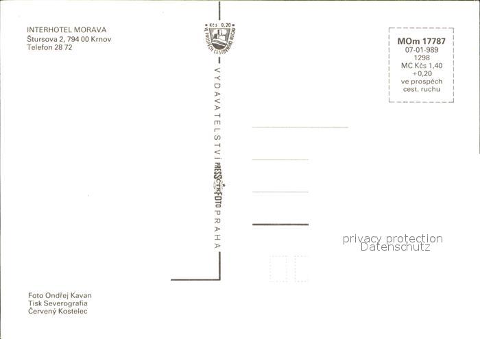 Krnov Interhotel Morava Bar Restaurant postalisch nicht gelaufen Erhaltung siehe scans