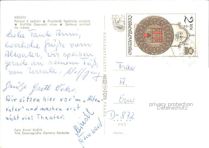 old postcard Krnov Pomotnik Sovetske armady Opavska ulice postalisch gelaufen Erhaltung siehe scans