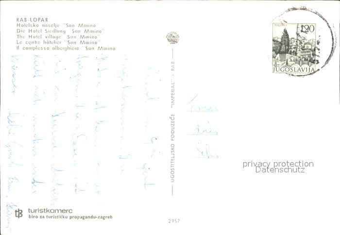 old postcard Kroatien Croatia Rab Lopar Hotelsiedlung San Marino postalisch gelaufen Erhaltung siehe scans