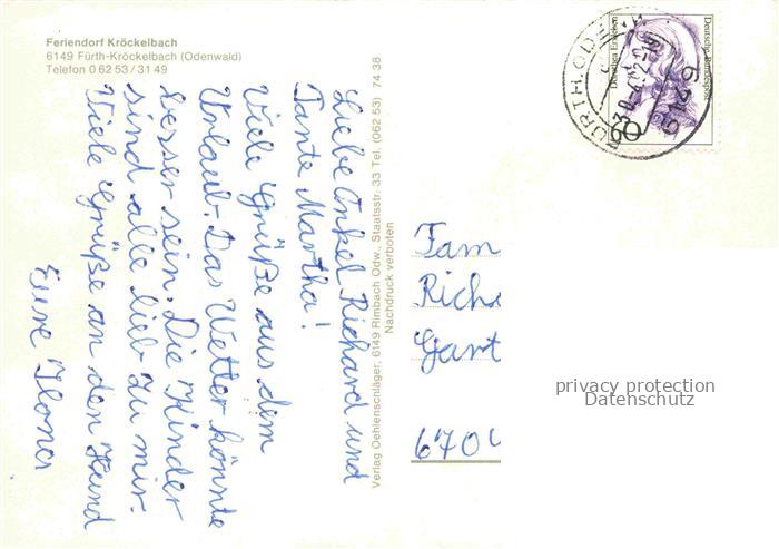 74023713 alte Postkarte Kroeckelbach Odenwald Fuerth Hessen Feriendorf Kroeckelbach Viehweide Bungalows postalisch gelaufen Erhaltung siehe scans [FriedD77] KatCode: 11110006431007