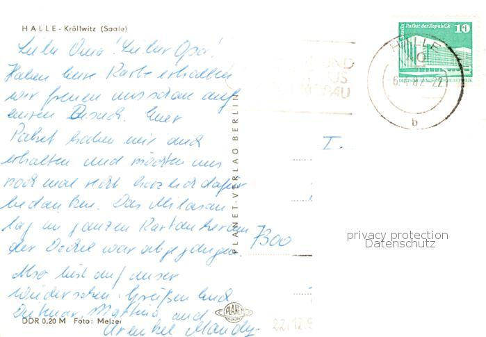 73867660 alte Postkarte Kroellwitz Halle Saale Saalepartie postalisch gelaufen Erhaltung siehe scans [WerneD78] KatCode: 11110015002000
