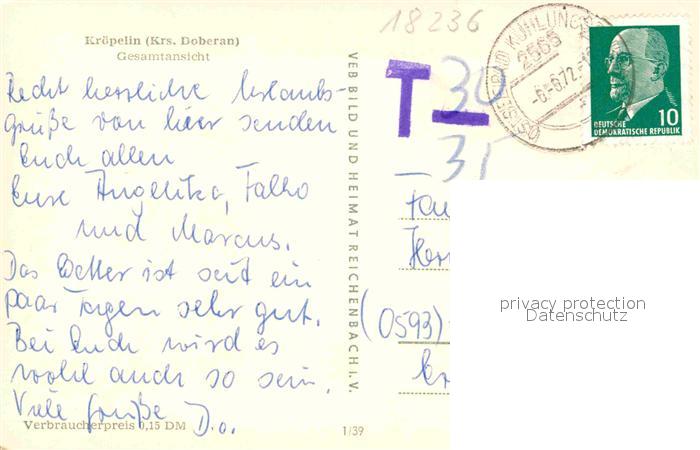 72890390 alte Postkarte Kroepelin Ortsansicht mit Kirche postalisch gelaufen Erhaltung siehe scans [FriedD77] KatCode: 11110013051041