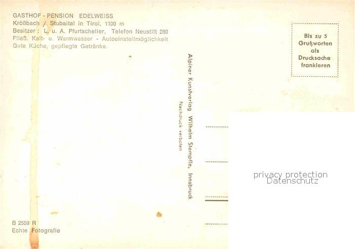 72769020 Kroessbach Gasthof Pension Edelweiss Terrasse Alpenblick postalisch nicht gelaufen Erhaltung siehe scans [FriedD77] KatCode: 11390332070334