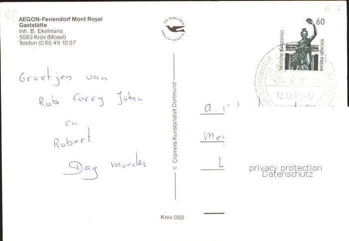 71929363 alte Postkarte Kroev Mosel Aegon Feriendorf Mont Royal 5re postalisch gelaufen Erhaltung siehe scans KatCode: 11110007231072