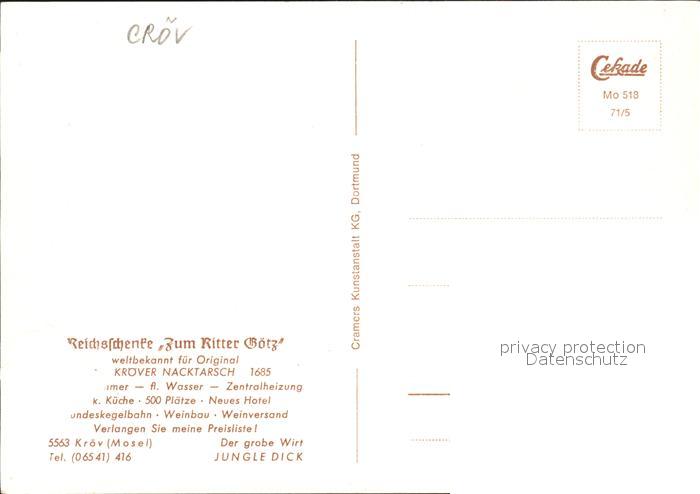 72319870 Kroev Mosel Croever Nacktarsch Reichschenke Zum Ritter Goetz postalisch nicht gelaufen Erhaltung siehe scans KatCode: 11110007231072