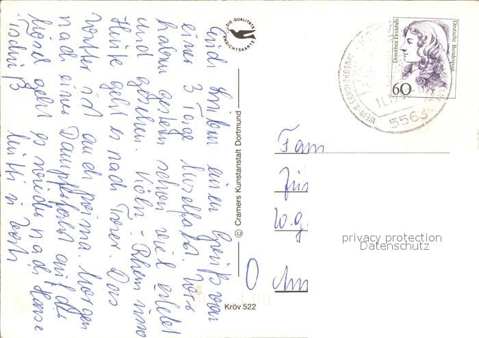 72534556 alte Postkarte Kroev Mosel Dreigiebelhaus Fachwerk Robert Schumann Strasse Freibad Europabrunnen Hof der Grauen Schwestern postalisch gelaufen Erhaltung siehe scans [AndreD76 kt121box] KatCode: 11110007231072