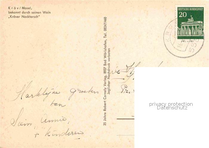 72661246 alte Postkarte Kroev Mosel Partien an der Mosel Kirche Fachwerkhaus postalisch gelaufen Erhaltung siehe scans [WerneD78] KatCode: 11110007231072