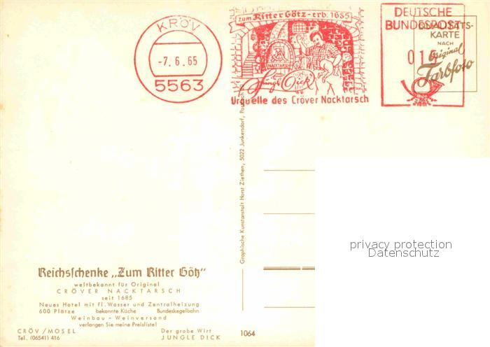 72728997 alte Postkarte Kroev Mosel Reichsschaenke Zum Ritter Goetz Gastraum Teilansicht postalisch gelaufen Erhaltung siehe scans [AndreD76] KatCode: 11110007231072