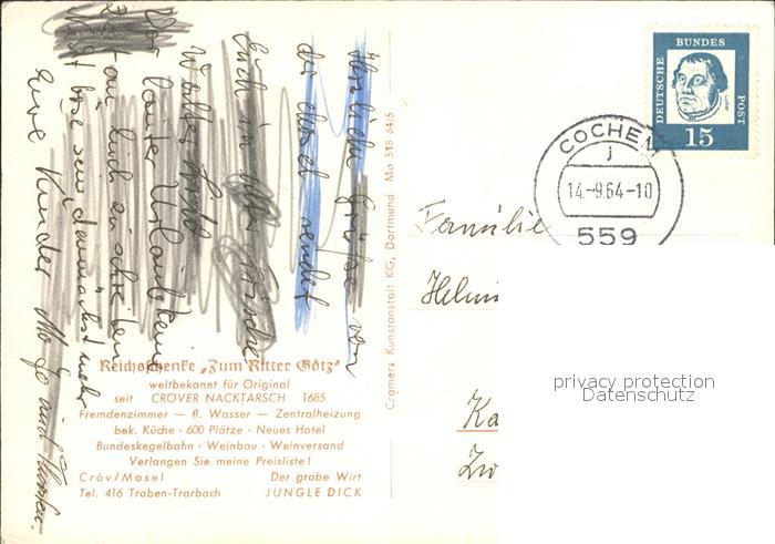 71941591 alte Postkarte Kroev Mosel Reichsschenke zum Ritter Goetz postalisch gelaufen Erhaltung siehe scans KatCode: 11110007231072