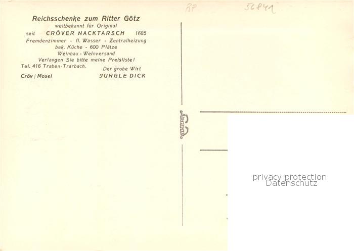 33658512 Kroev Mosel Reichsschenke zum Ritter Goetz Gastraeume postalisch nicht gelaufen Erhaltung siehe scans [WerneD78] KatCode: 11110007231072