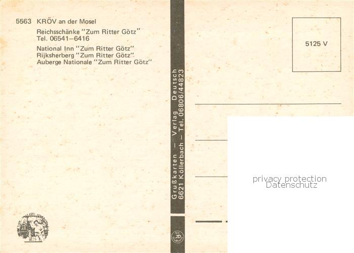 73759281 Kroev Mosel Reichsschenke Zum Ritter Goetz Gastraum postalisch nicht gelaufen Erhaltung siehe scans [FriedD77] KatCode: 11110007231072