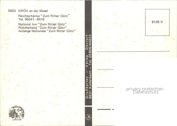 72577644 Kroev Mosel Reichsschenke Zum Ritter Goetz Gedicht Goetz von Berlichingen postalisch nicht gelaufen Erhaltung siehe scans [FriedD77] KatCode: 11110007231072