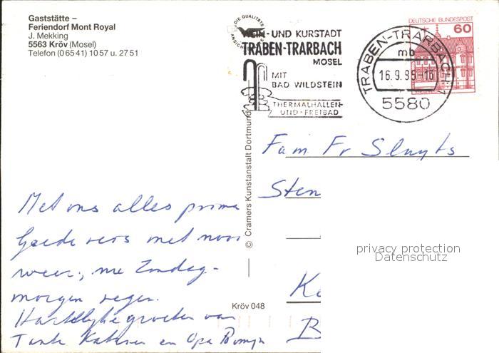 72304977 alte Postkarte Kroev Mosel Restaurant Feriendorf Mont Royal postalisch gelaufen Erhaltung siehe scans KatCode: 11110007231072