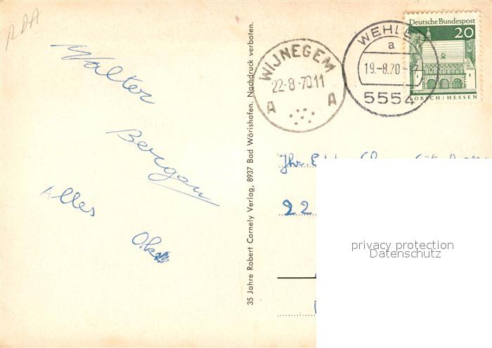 73176364 alte Postkarte Kroev Mosel Uferpartie an der Mosel Weinberge Floss Ortspanorama Kirche Wappen postalisch gelaufen Erhaltung siehe scans [FriedD77] KatCode: 11110007231072