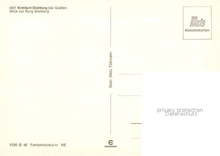 73000978 Krofdorf-Gleiberg Blick zur Burg postalisch nicht gelaufen Erhaltung siehe scans [AndreD76] KatCode: 11110006531018
