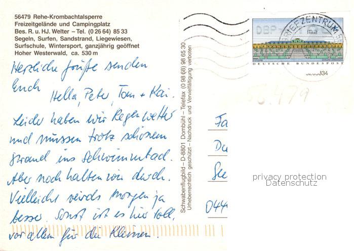72987665 alte Postkarte Krombachtalsperre Fliegeraufnahme Rehe Camping postalisch gelaufen Erhaltung siehe scans [LiesaD40] KatCode: 11110006532007