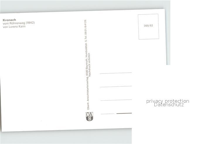 72482339 Kronach Oberfranken postalisch nicht gelaufen Erhaltung siehe scans KatCode: 11110009476145