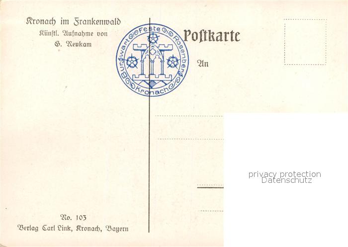 72952491 Kronach Oberfranken Bamberger Tor postalisch nicht gelaufen Erhaltung siehe scans [FriedD77] KatCode: 11110009476145