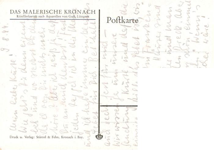 73887845 Kronach Oberfranken Bamberger Tor Aquarell postalisch nicht gelaufen Erhaltung siehe scans [FriedD77] KatCode: 11110009476145