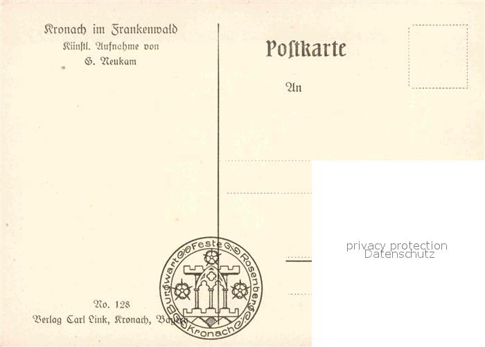 72821043 Kronach Oberfranken Bamberger Tor No. 128 Stempel Burgwart Feste Rosenberg postalisch nicht gelaufen Erhaltung siehe scans [FriedD77] KatCode: 11110009476145
