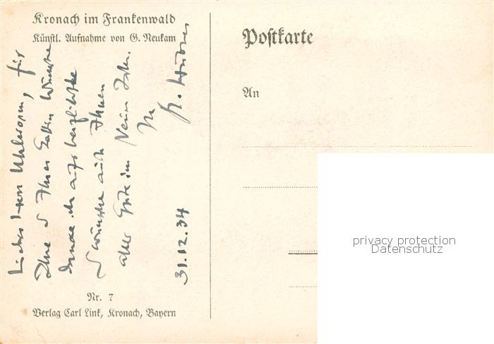 73808101 Kronach Oberfranken Blick auf Stadt und Feste Rosenburg vom Sand postalisch nicht gelaufen Erhaltung siehe scans [FriedD77] KatCode: 11110009476145