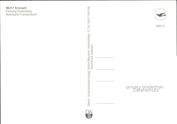 71859909 Kronach Oberfranken Festung Rosenberg postalisch nicht gelaufen Erhaltung siehe scans KatCode: 11110009476145