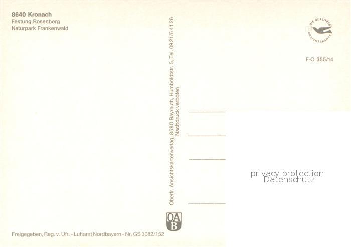 73615078 Kronach Oberfranken Festung Rosenberg Fliegeraufnahme postalisch nicht gelaufen Erhaltung siehe scans [PaolaD17] KatCode: 11110009476145