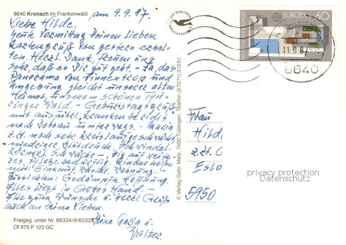 73655241 alte Postkarte Kronach Oberfranken Fliegeraufnahme postalisch gelaufen Erhaltung siehe scans [FriedD77] KatCode: 11110009476145