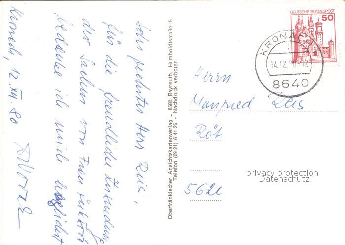72312473 alte Postkarte Kronach Oberfranken Frankenwald Hochstrasse mit Muehle Steinwiesen Koedeltalstausee Nordhalben Wallenfels Duerrenwaid postalisch gelaufen Erhaltung siehe scans KatCode: 11110009476145