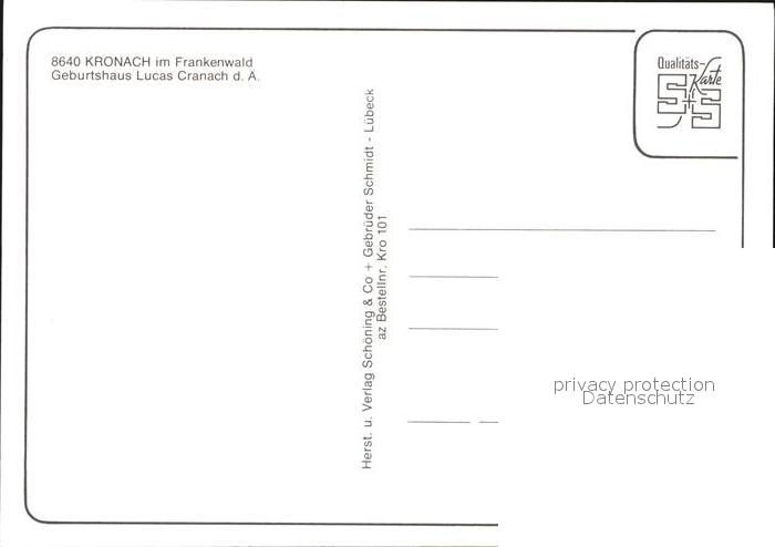 72447423 Kronach Oberfranken Geburtshaus Lucas Cranach postalisch nicht gelaufen Erhaltung siehe scans KatCode: 11110009476145