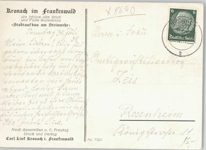 40238524 Kronach Oberfranken KünstlerC. Freytag Steinwehr KatCode 11110009476145