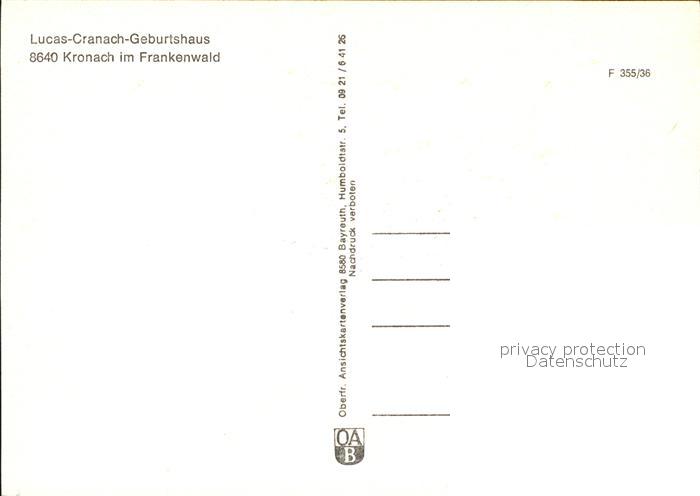 72548723 Kronach Oberfranken Lucas-Cranach-Geburtshaus Gasthaus zum Scharfen Eck postalisch nicht gelaufen Erhaltung siehe scans [LiesaD40 kv021box] KatCode: 11110009476145