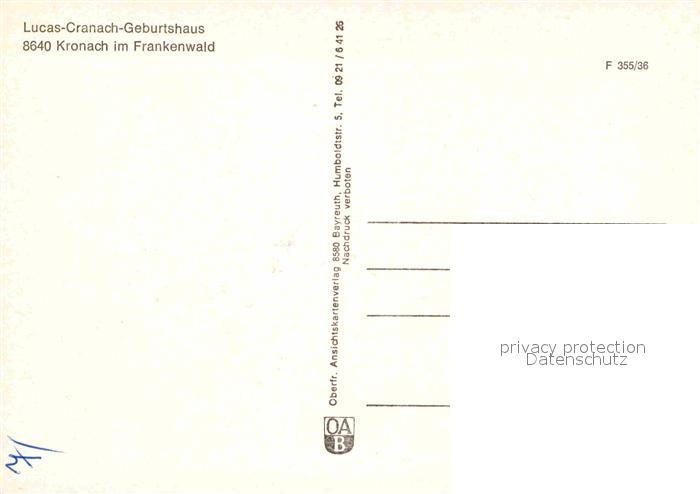 72900352 Kronach Oberfranken Lucas Cranach Geburtshaus postalisch nicht gelaufen Erhaltung siehe scans [FriedD77] KatCode: 11110009476145
