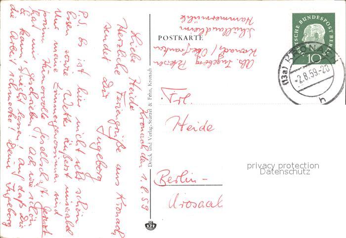 72601772 alte Postkarte Kronach Oberfranken Partie am Fluss postalisch gelaufen Erhaltung siehe scans [LiesaD40] KatCode: 11110009476145