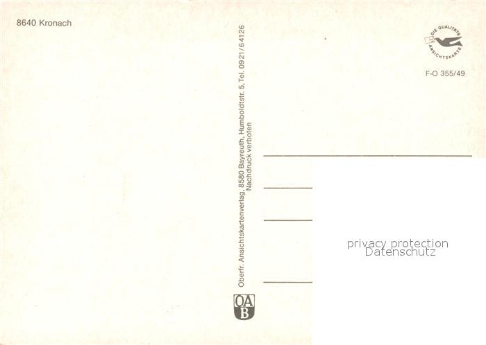 73265939 Kronach Oberfranken Stadtbild mit Festung Rosenberg Locas Cranach Geburtshaus Hasslach Melchior Otto Platz Denkmal postalisch nicht gelaufen Erhaltung siehe scans [FriedD77] KatCode: 11110009476145