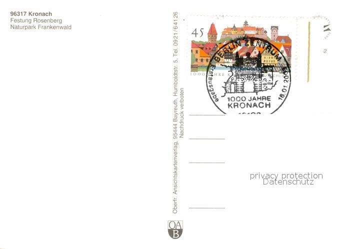 72964748 Kronach Oberfranken Veste Rosenberg Festung Naturpark Frankenwald Fliegeraufnahme postalisch nicht gelaufen Erhaltung siehe scans [FriedD77] KatCode: 11110009476145